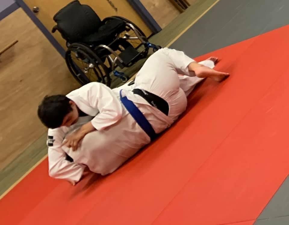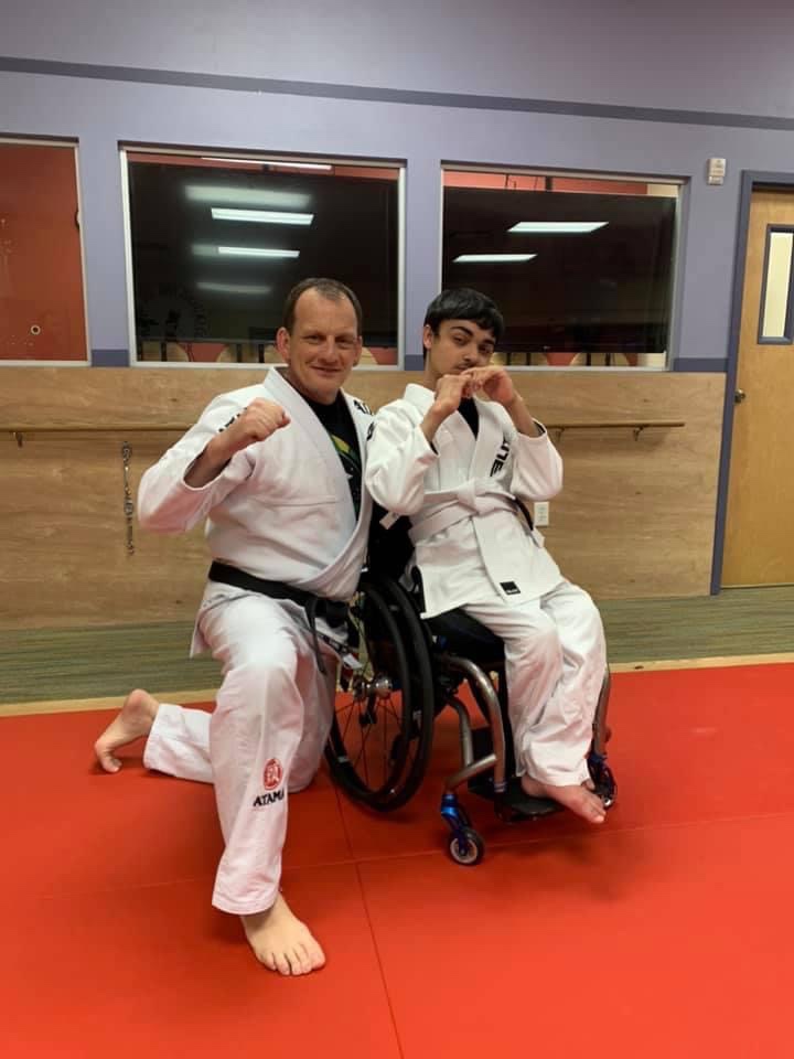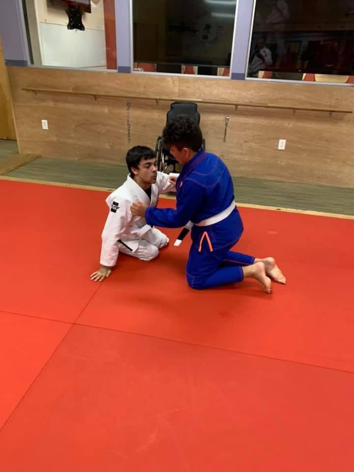 I would like to introduce you to Josh, one of the newest members of our Wolfpack family. As a young child, Josh lost the use of the lower half of his body. When this condition first hit him, he was unable to sit up, feed himself, or use his hands and arms. Josh is an inspiration and a great example for all of us to follow. He doesn’t quit! He finds a way to better himself. He never gave up! He learned to sit up! He learned to feed himself! He kept going and gained the use of his hands! And he still doesn’t give up! Now he is learning and fully participating in Gracie Jiu-Jitsu, something most adults don’t do. Nothing is stopping him from improving himself. Wolfpack is truly blessed to have such an inspiration on the team! BE LIKE JOSH!